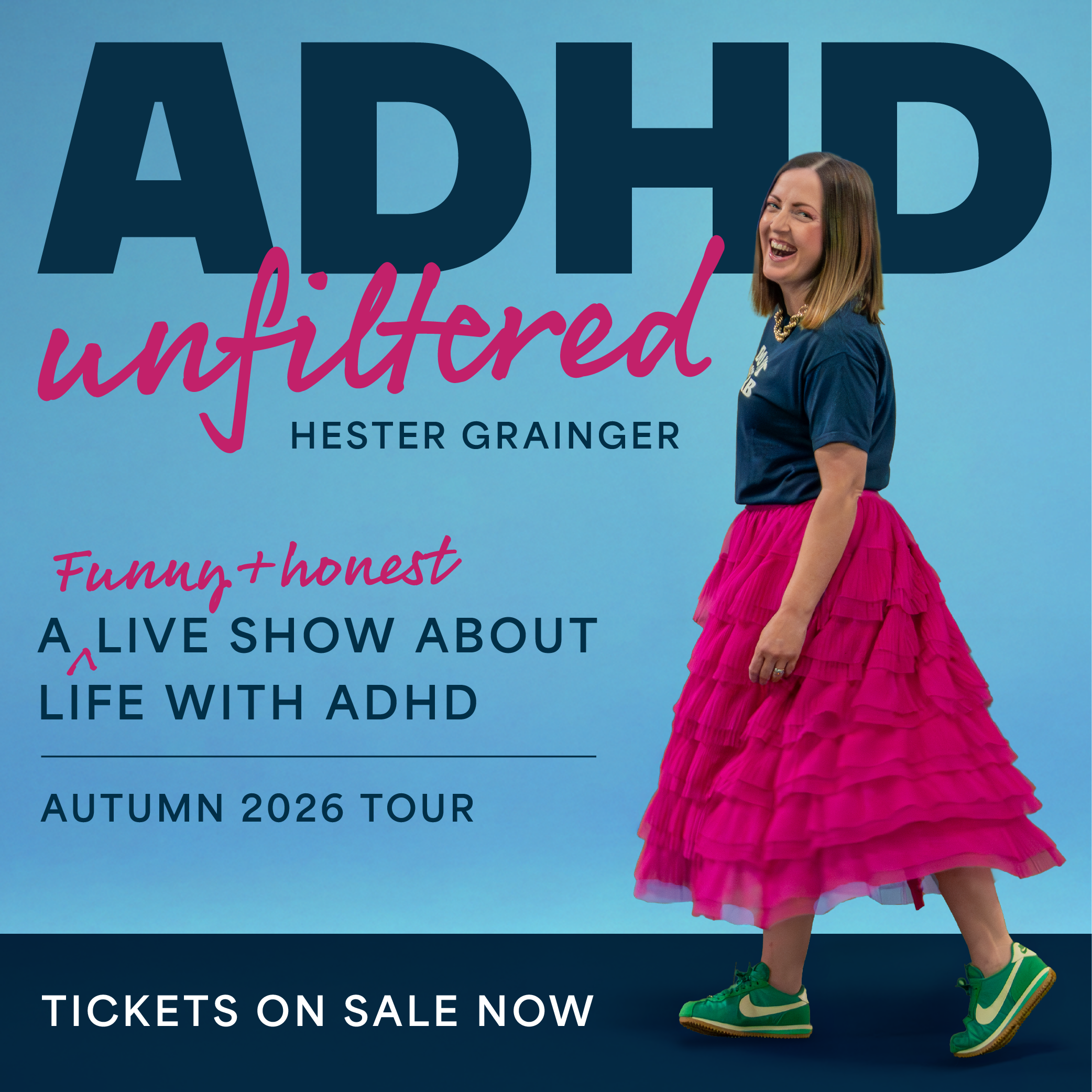 ADHD Unfiltered is packed with laugh out loud stories, accurate observations and audience interaction, putting words to the everyday realities of life with an ADHD brain.